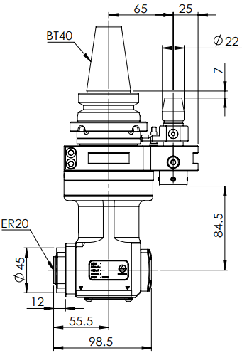 ◎BT40-ER20 90° Aluminum Angle Head (AHM Type-Internal Nut)