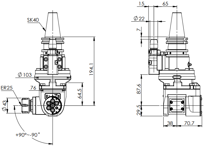 ◎ SK40-ER25 Universal Angle Head (AHG Type)